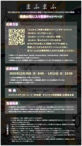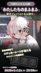 さらに、活動15周年を記念した『15周年ふりかえり企画!「わたしたちのまふまふ」』と題した診断企画もスタート。ニコニコ動画やYouTubeで投稿されてきた“歌ってみた”やオリジナル楽曲の中から、リスナーの好みに合わせておすすめプレイリストを提案するコンテンツとなっております。診断企画の参加締切は 2026年5月31日(日)23:59。また参加者限定で「ジャケットステッカーシート」が抽選で当たるキャンペーンもあわせて実施中(応募期限は 2026年1月12日(月)23:59)。