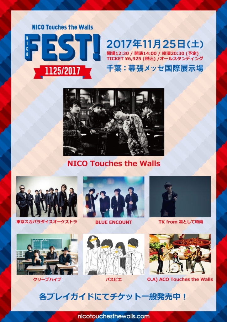 出演:NICO Touches the Walls/東京スカパラダイスオーケストラ/BLUE ENCOUNT/TK from 凛として時雨/ クリープハイプ/パスピエ/(Opening Act)ACO Touches the Walls